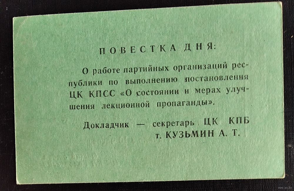Пригласительный билет на республиканское совещание по лекционной пропаганде. 1978 г.