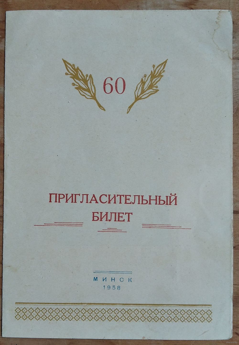 Пригласительный билет на торжественное заседание. :0-летие Кесселя Н.К. Минск. БПИ. 1958 г.