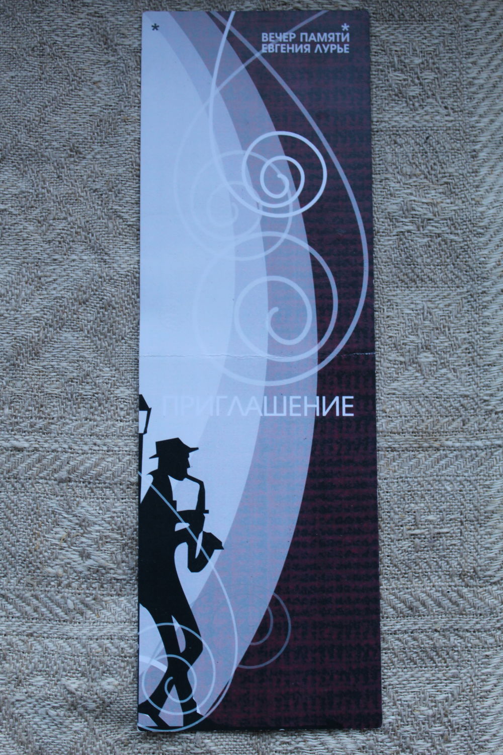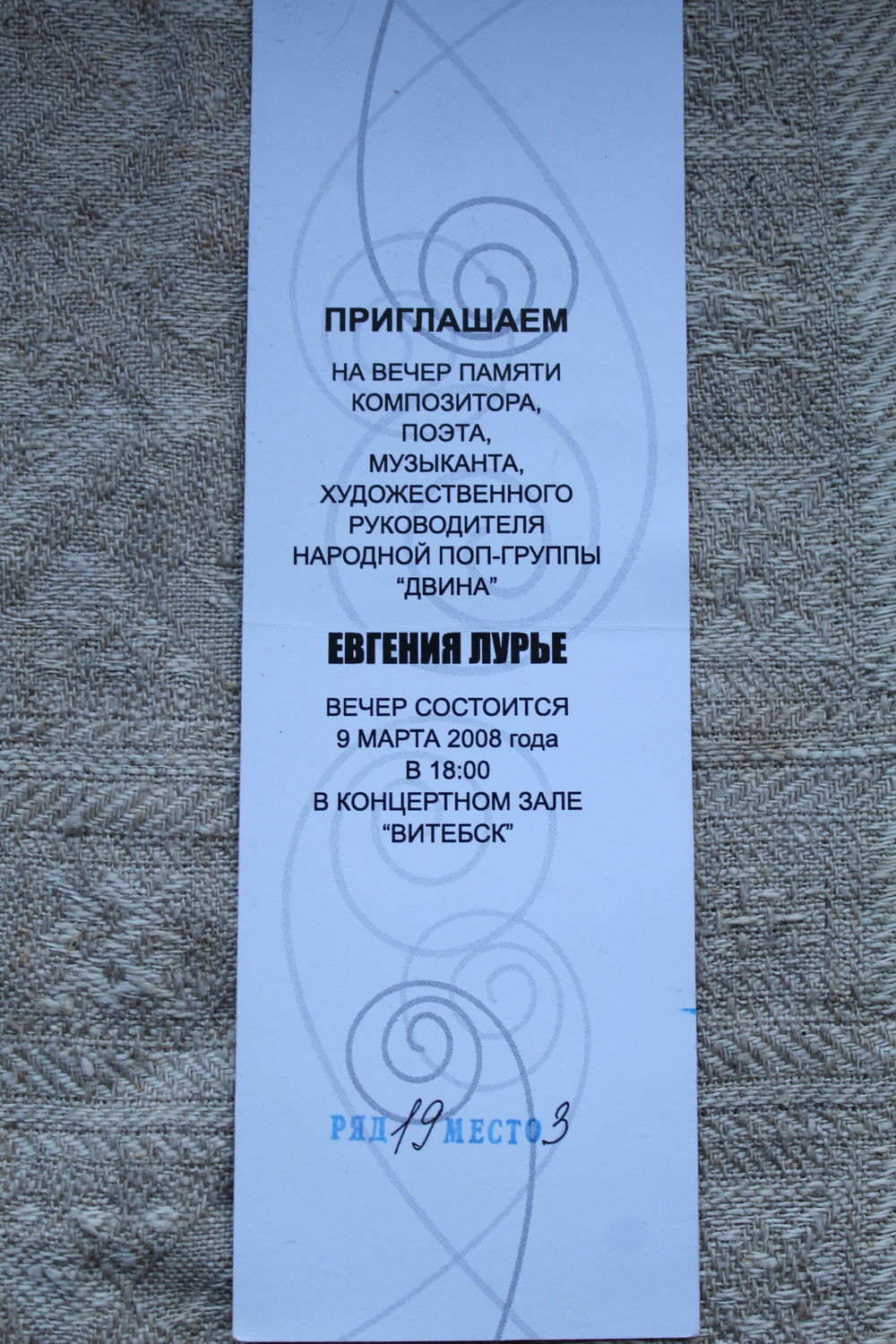 Пригласительный билет на вечер памяти поэта, композитора Евгения Лурье группа "Двина" 2008 год