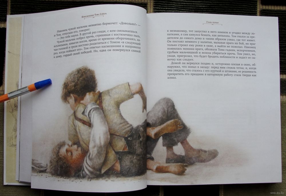Пожалуй, нет более известной повести, чем повесть Марка Твена «Приключения Тома Сойера», которую с удовольствием читают уже более ста лет дети и взрослые. И это совсем не удивительно, ведь в ней есть все, что так привлекает читателя, — романтика приключений, живой юмор, захватывающий своими неожиданными поворотами сюжет и даже томительные любовные переживания главного героя — сорванца и проказника Тома Сойера! Особенную прелесть настоящему изданию придают великолепные иллюстрации знаменитого художника Роберта Ингпена.