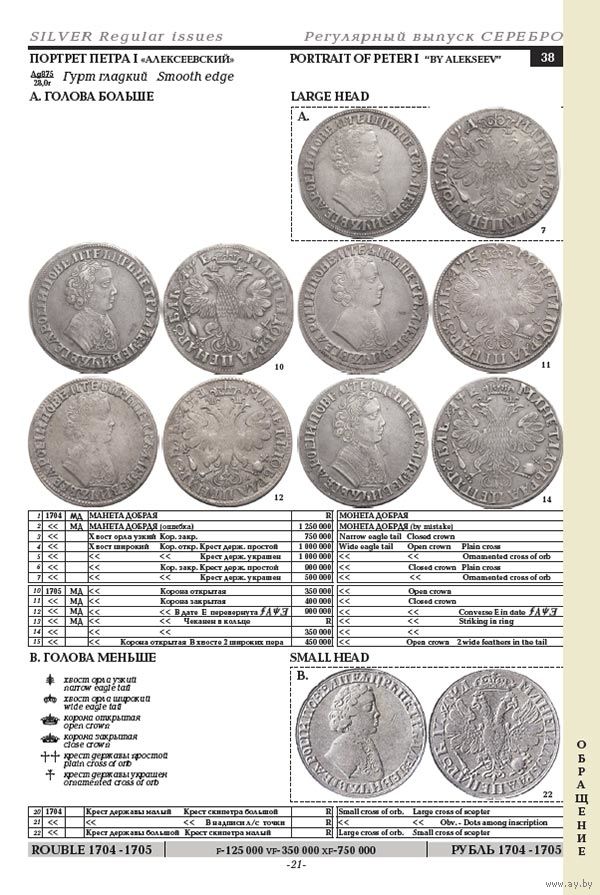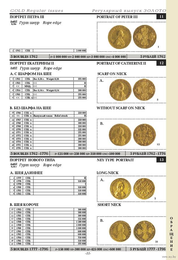 Для всех монет указаны цены на 2018 год по результатам продаж на российских и иностранных аукционах, также указана примерная градация цен в соответствии с сохранностью монеты.