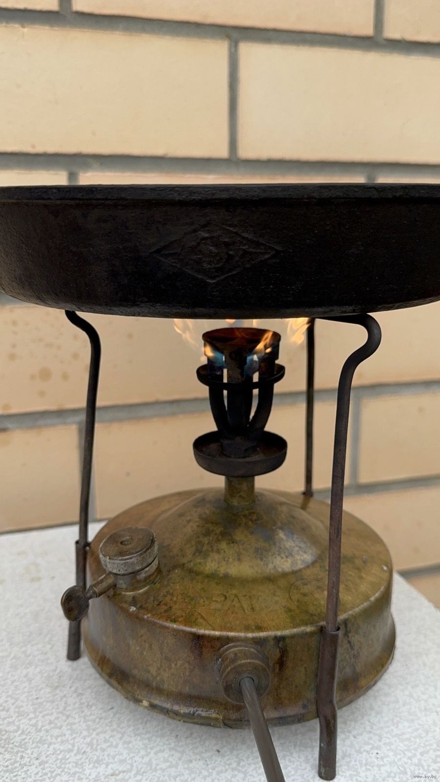Примус в отличном рабочем состоянии.Прекрасная работа как на керосине так и на смеси дизтоплива(соляры) и бензина в соотношении 4:1. Не замерзает (в отличии от газовых баллонов ).Работает в диапазоне любых температур.Видео работы прибора вышлю в личку . На аушку загрузить не получилось. Пользуюсь уже семь лет.Сейчас себе купил такой же полностью новый .