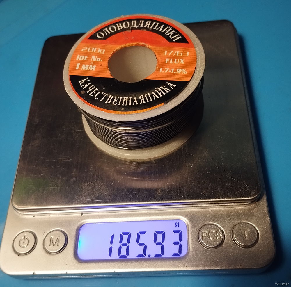 Припой на фото, без флюса. Остаток 185г с катушкой. t плавления выше чем у ПОС-61.