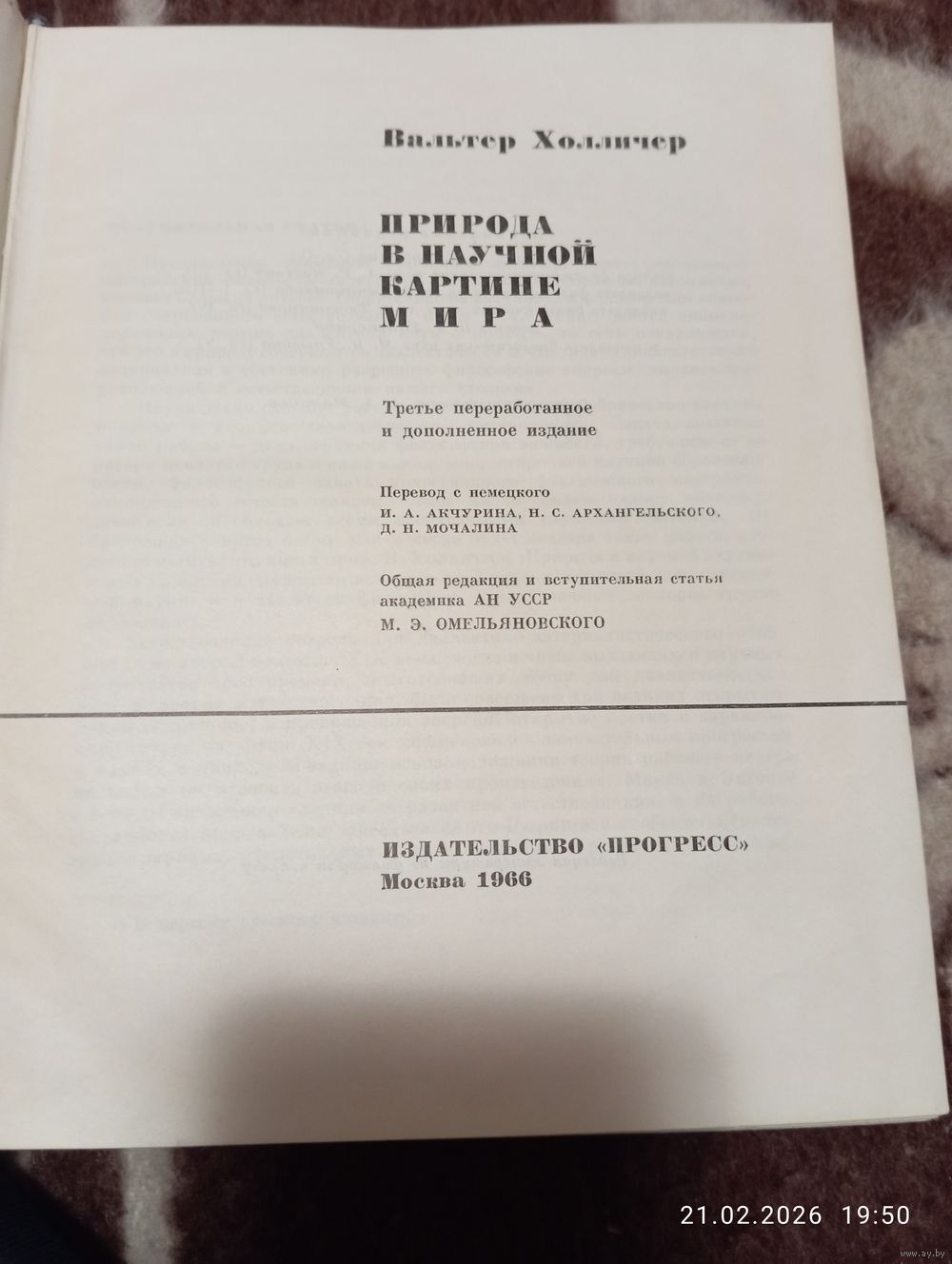 Природа в научной картине мира. Холличер В. М. Прогресс 1966. В хорошем состоянии, тв переплет, увеличенный формат. 567 с. Иллюстрации. Возможность отправки Белпочтой, полная предоплата