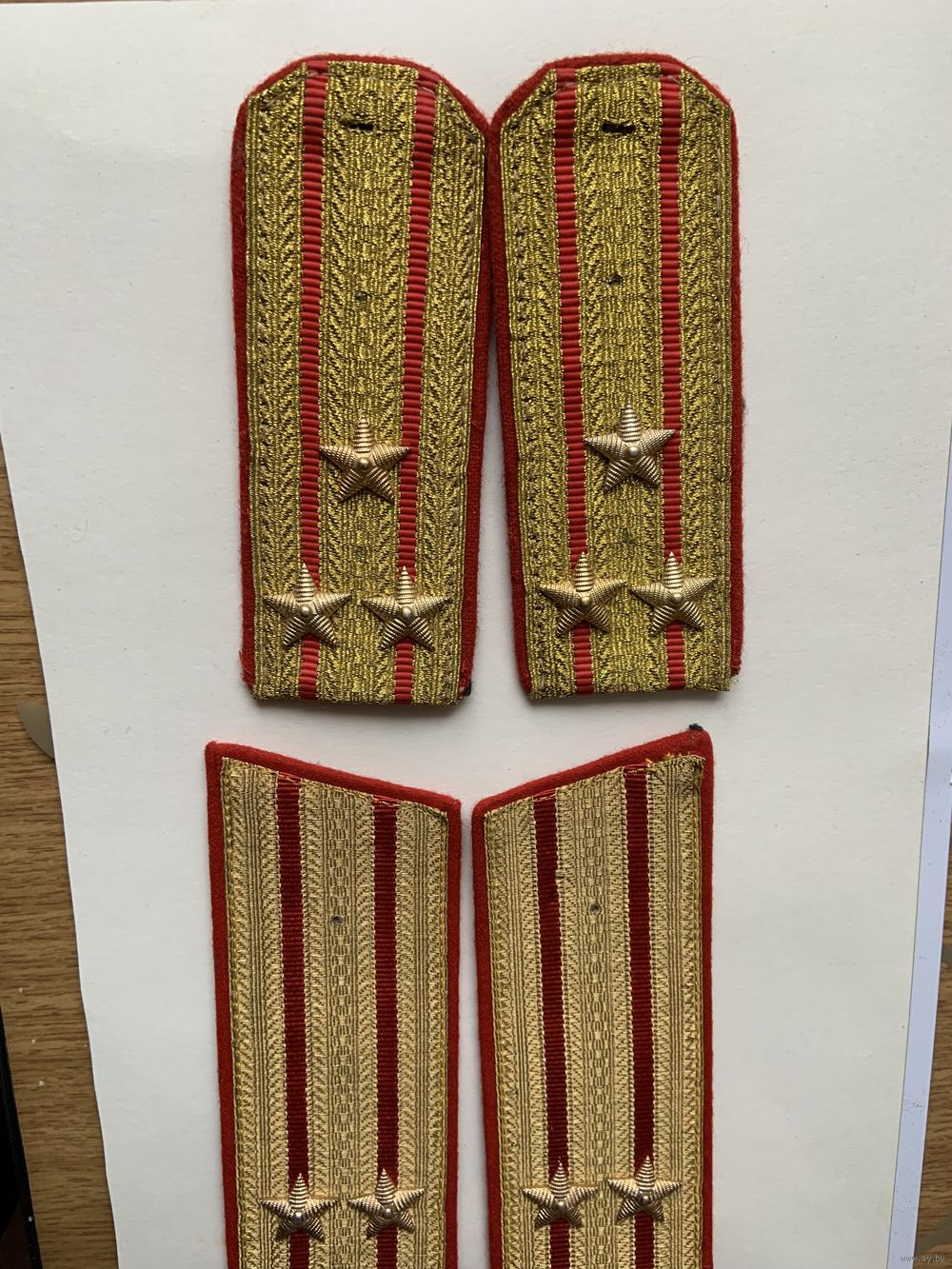 | Погоны полковника-верхние-57 руб, нижние 39. Это общевойсковые погоны с ярким красным кантом! | |