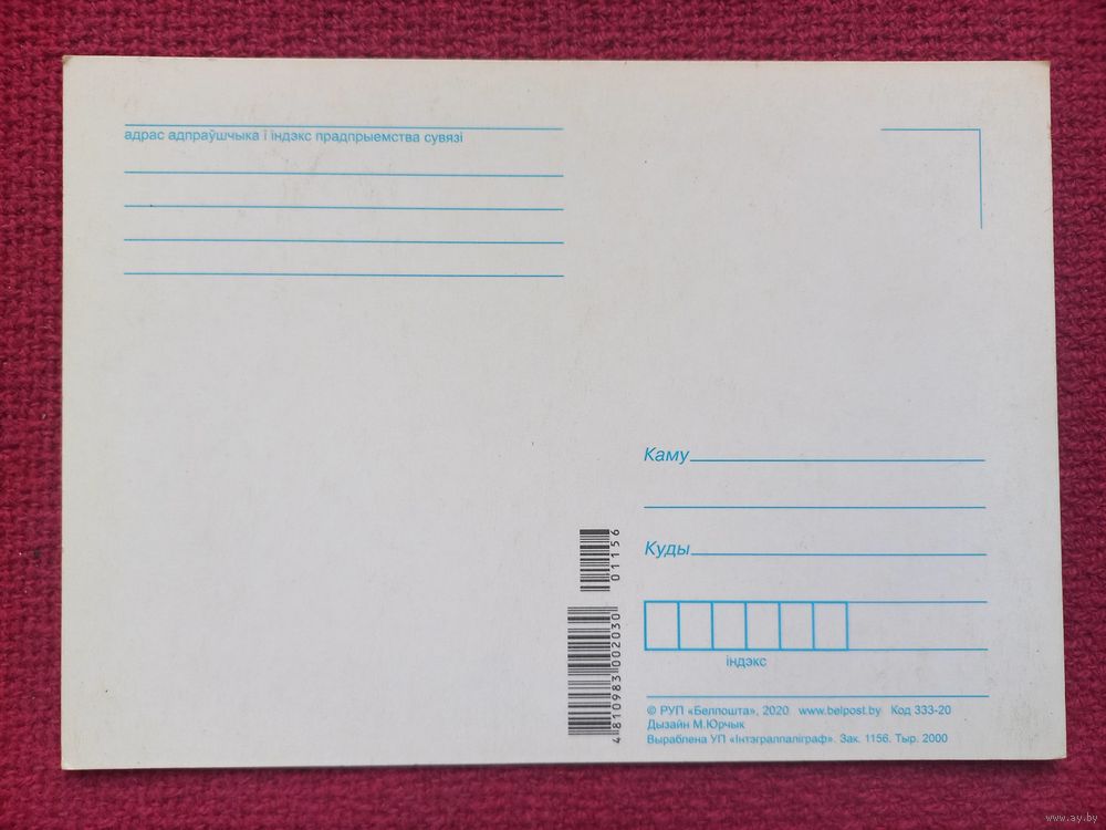 Привет с Беларуси! Белпочта 2020 г. Чистая.