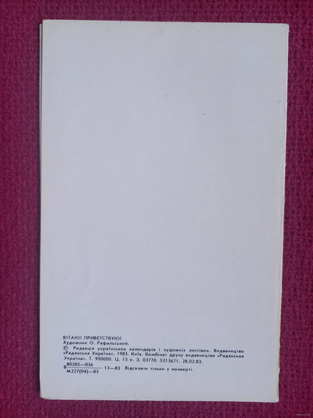 Приветствую! Украинская открытка. Рафальский 1983 г. Двойная. Чистая.