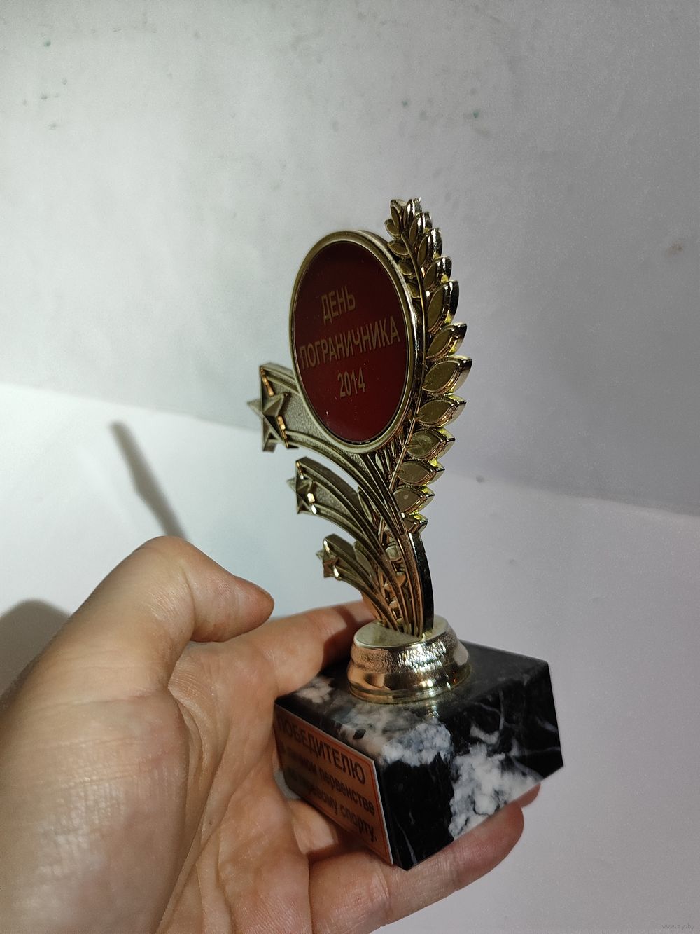 В день пограничника 2014 г. Пластик - внизу мрамор. Состояние на фото. Высота -14 см.