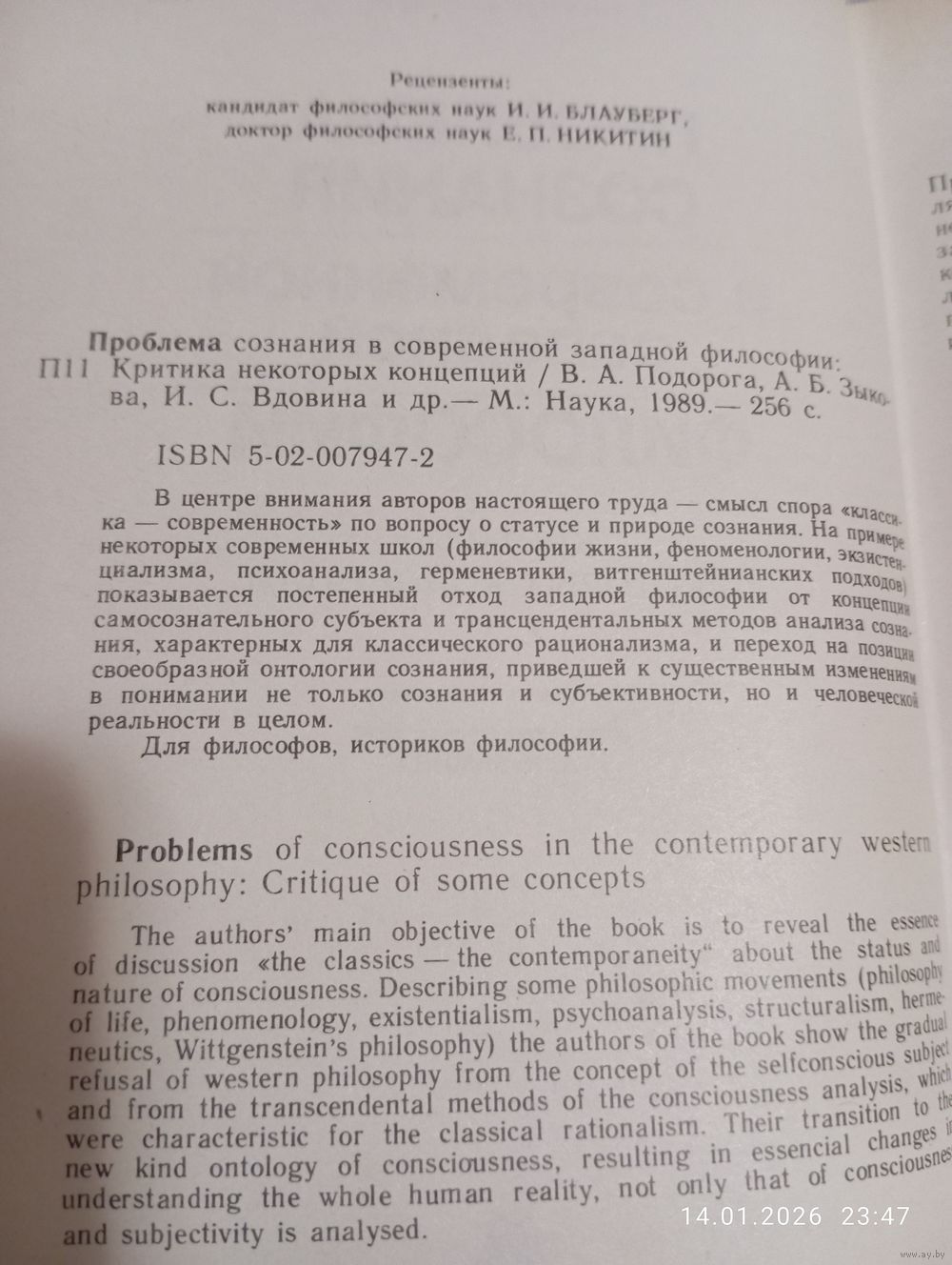 Проблема сознания в современной западной философии. Критика некоторых концепций. М. Наука 1989. В прекрасном состоянии, тв переплет. 256 с. Тираж 5550. Возможность отправки Белпочтой, полная предоплата на карту Беларусбанк