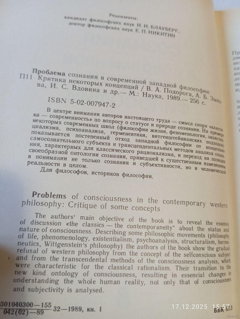Проблема сознания в современной западной философии. Редкая. Наука 1989. В прекрасном состоянии, тв переплет. 256 с. Тираж 5550. Возможность отправки Белпочтой, полная предоплата