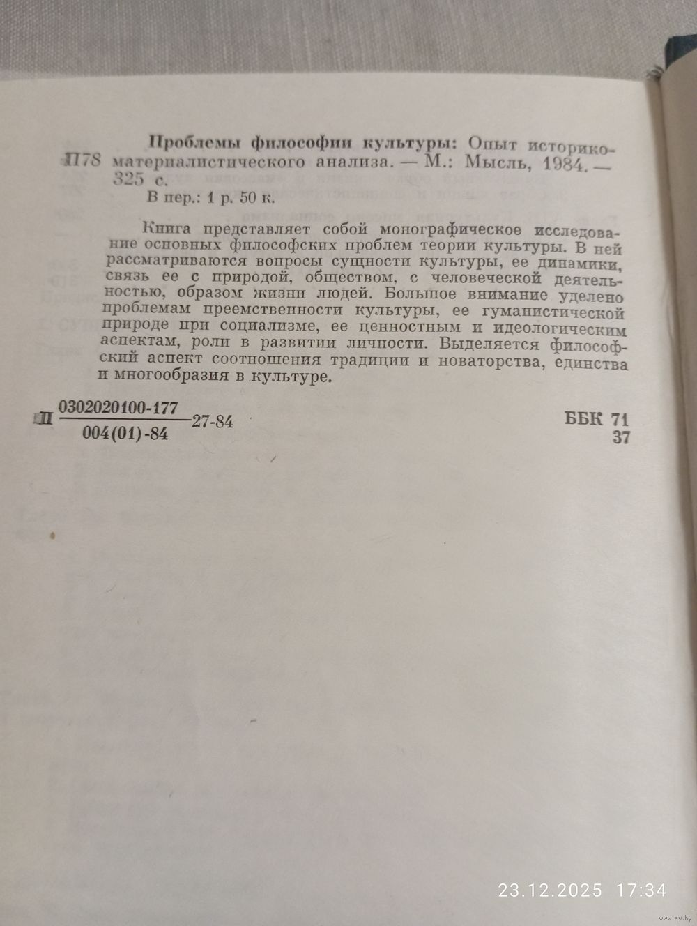 Проблемы философии культуры. Мысль 1984. В хорошем состоянии, тв переплет. 325 с. Возможность отправки Белпочтой, полная предоплата