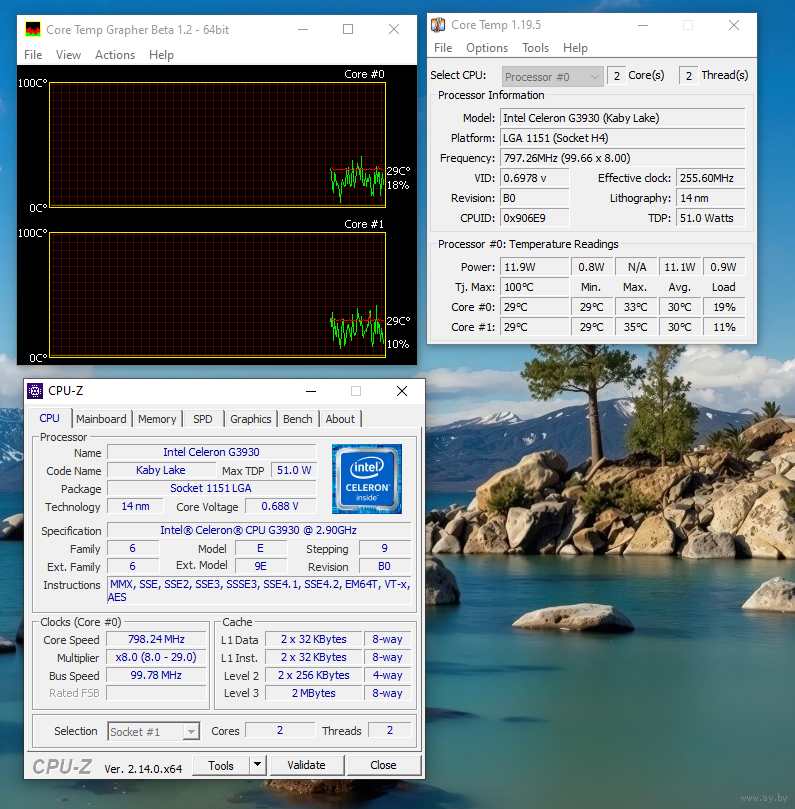 = 2017 г, Kaby Lake, сокет LGA1151, частота 2.9 ГГц, кэш 2 МБ, техпроцесс 14 нм, поддержка DDR3/DDR4
