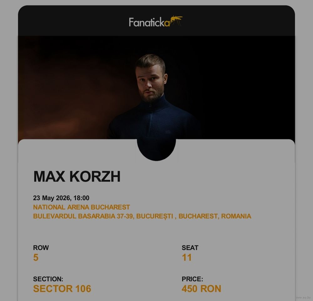 Продам билет на концерт Макса Коржа в Бухаресте