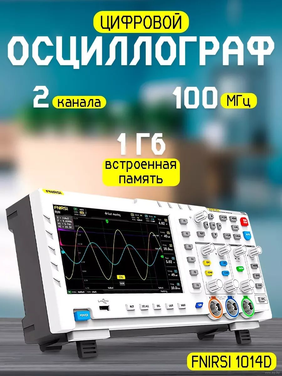 Продам цифровой осциллограф FNIRSI 1014D – это двухканальный прибор для измерения электронного сигнала, а также возможности запоминать до 1000 произведенных измерений сигналов и в качестве скриншота, который можно отправить на другие носители с помощью встроенного USB. Устройство обладает большой памятью на 1 ГБ. Для полноценного и удобного измерения предусмотрен экран в 7 дюймов с разрешением 800*400 пикселей. У прибора предусмотрена специальная кнопка auto, которая настраивает нужный сигнал для измерения. Осциллограф может сам формировать 14 видов форм сигналов за счет встроенного генератора. Работает аппарат от внешнего источника питания 5 вольт.