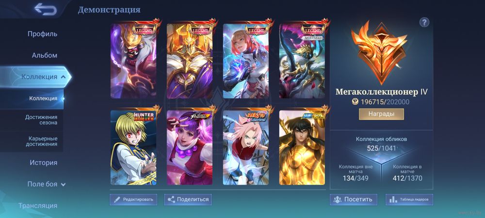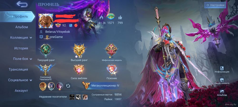 Продаю личный аккаунт, можно сказать с выхода игры(с 2 сезона). В аккаунт вложено не мало денег и времени. 525 скинов, куча рамок(есть эксклюзивные) и куча разной мелочи. Все герои, максимальные эмблемы, 3000 кристаллов Авроры, как раз на 1 Коллектор скин хватит. Возможен небольшой торг как говорится на дорогу) рассмотрю вариант обмена на неплохой телефон + ваша доплата. Продажа только личной встречой. Заинтересованным могу снять видео обзор всего аккаунта