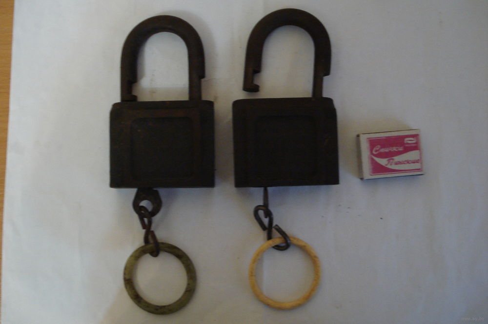 Замки навесные, старинные, СССР (примерно шестидесятых годов прошлого века), корпус чугунный, вес одного замка- 1200грамм, в хорошем рабочем состоянии, с одним ключом. Можно продажа одного замка (35руб). Пересылка Белпочтой после предоплаты, оплатить можно почтовым переводом или на телефон. Услуги почты оплачивает получатель. Смотрите другие мои лоты