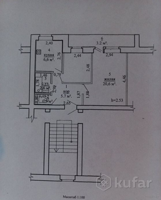 Площадь кухни 6.6 м²