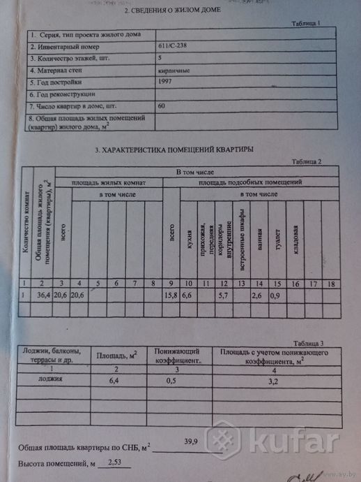 Площадь по СНБ 39.9 м²