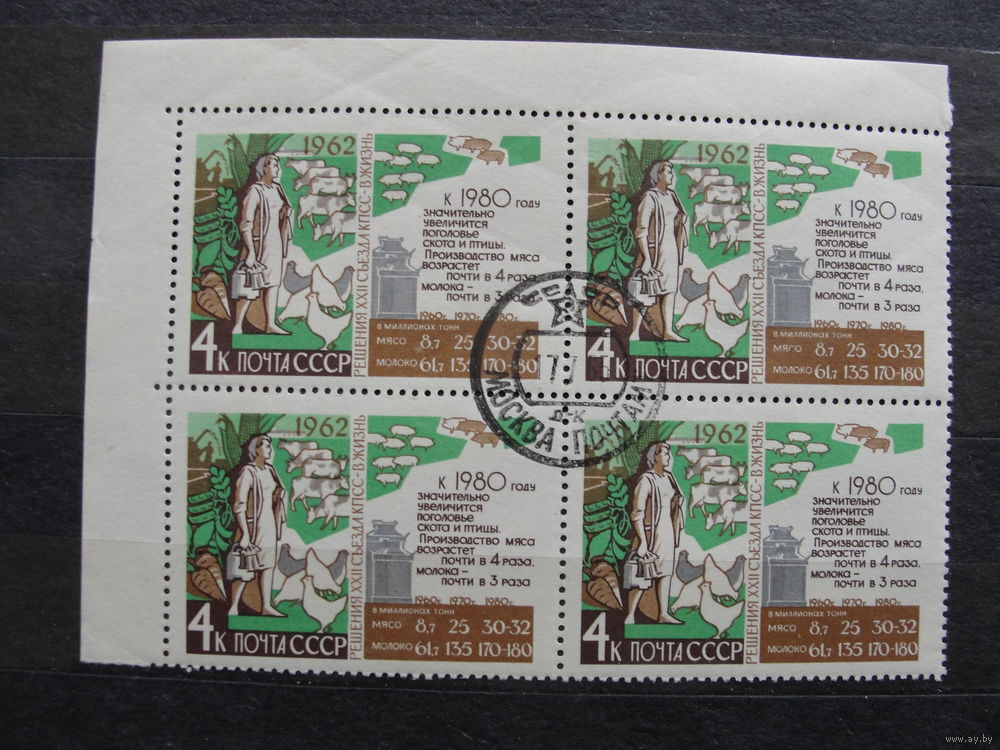 Продажа коллекции с 1 рубля! Гашеные почтовые марки СССР в квартблоках.