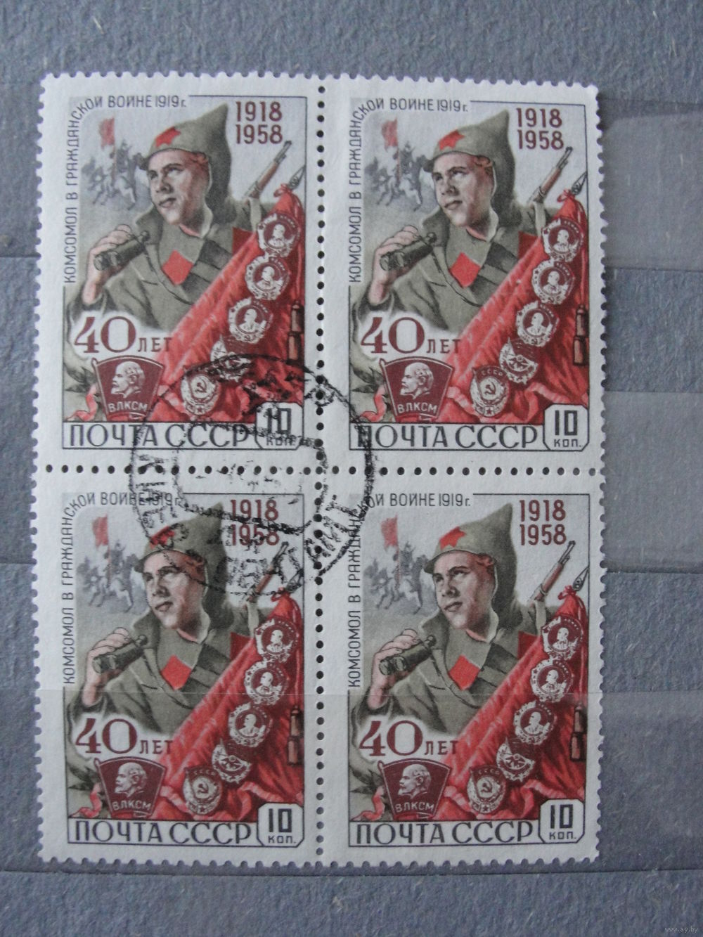 Продажа коллекции с 1 рубля! Гашеные почтовые марки в квартблоках.