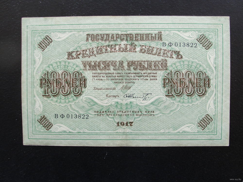 Продажа коллекции с 1 рубля! Гос. кредитный билет РИ 1917г.