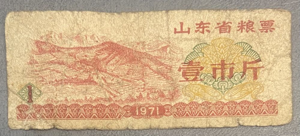 Продовольственные талоны провинции Шаньдун 1971 год. Китай. С рубля без МЦ.