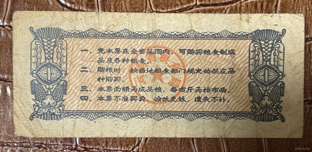 Продуктовые талоны провинции Юньнань 1973 год. Китай. С рубля без МЦ.
