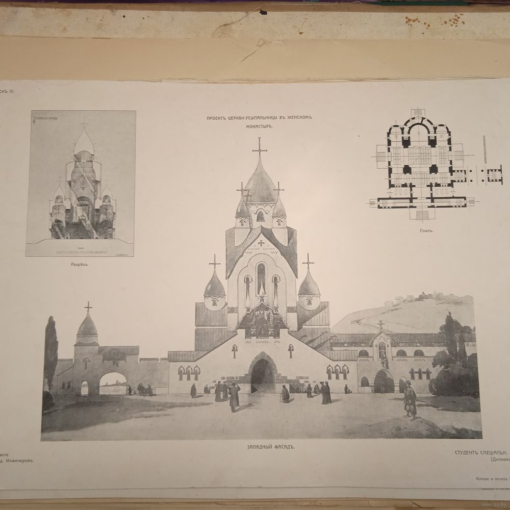 ПРОЕКТЪ Церкви-усыпальницы в женскомъ монастыре. Клише и печать С.М. Прокудин-Горского, СПБ.39х27см. РАСПРОДАЖА КОЛЛЕКЦИИ.