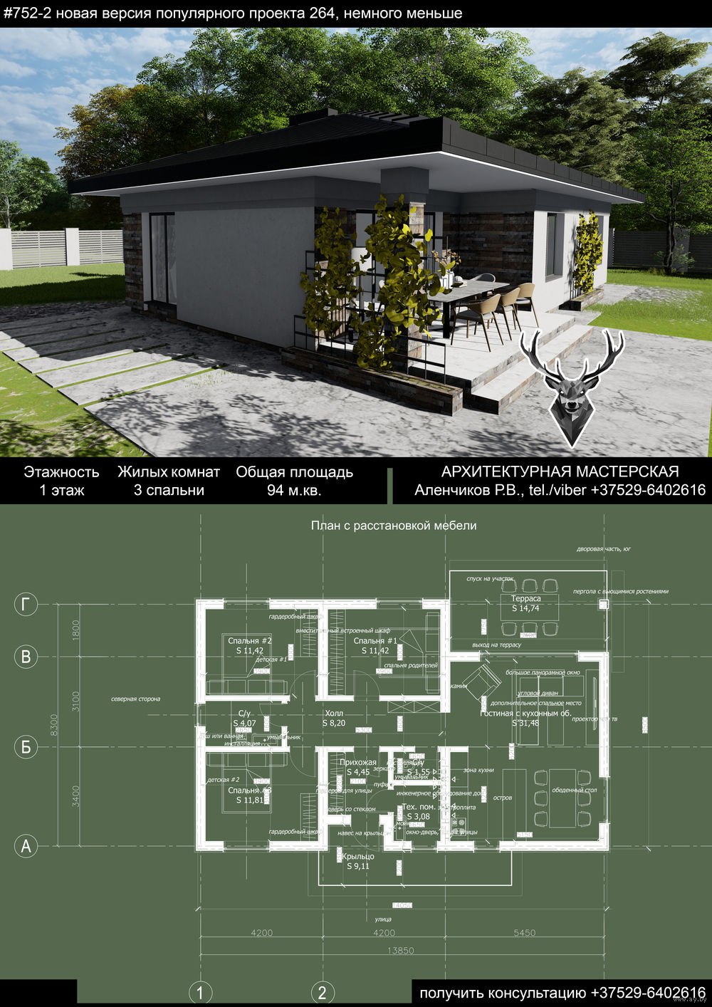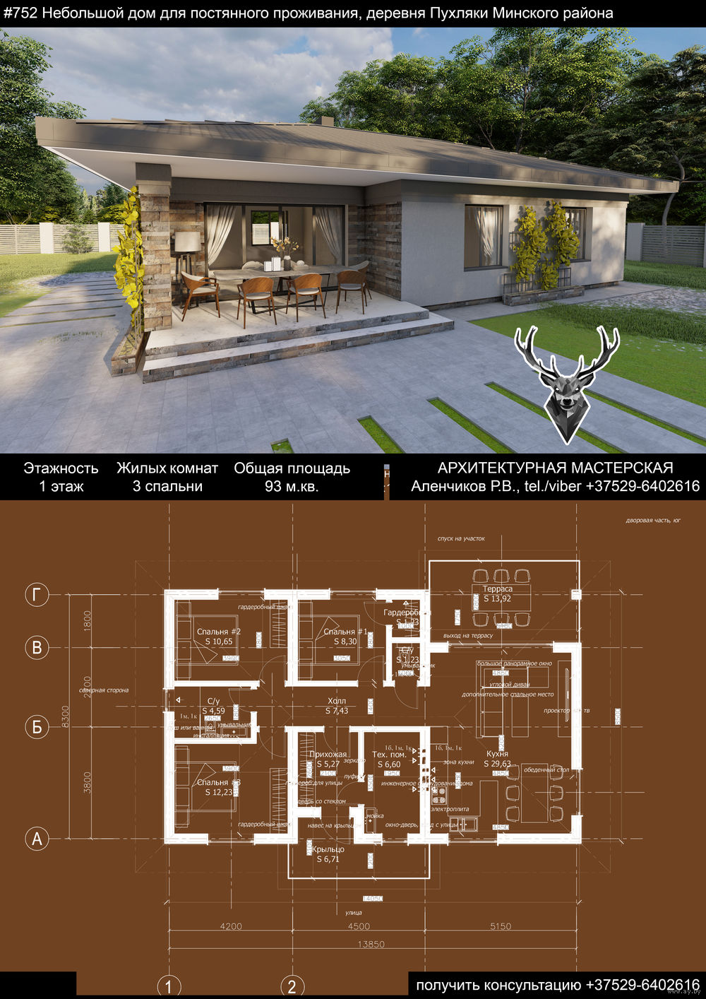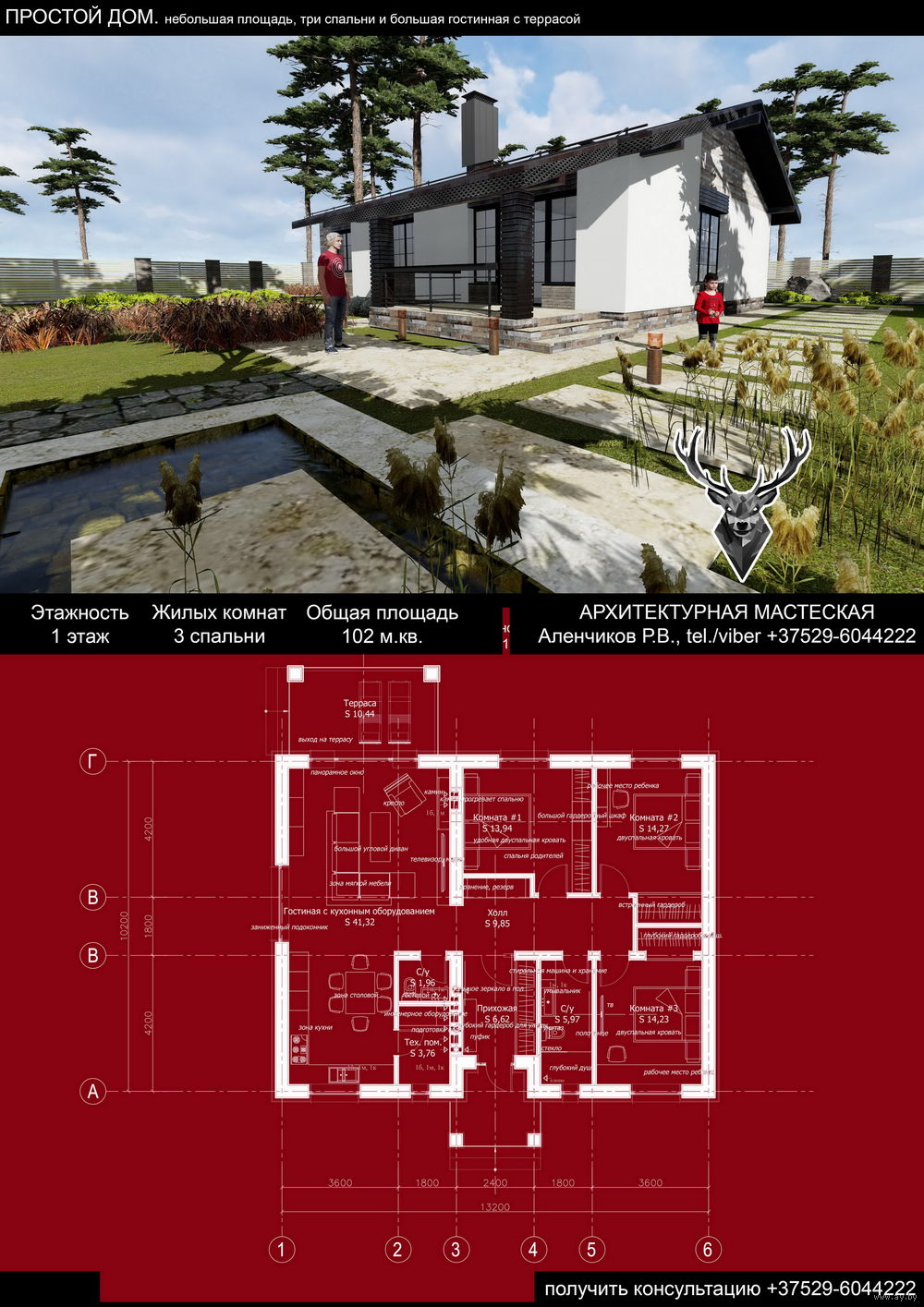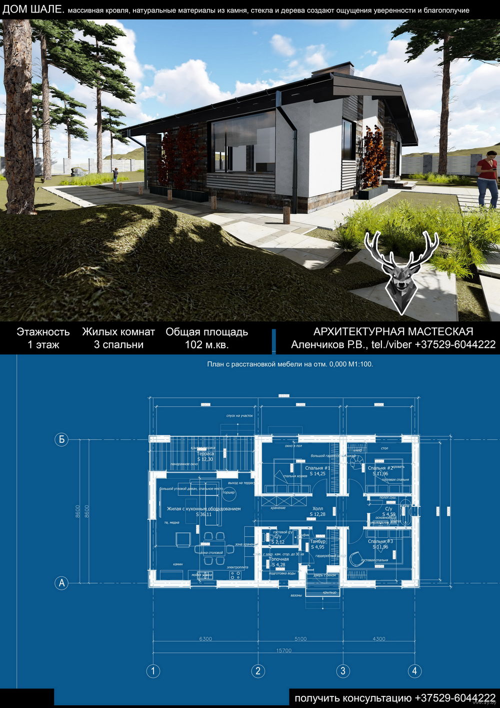 проект дома с 3 спальнями, проект для согласования в исполкоме (уточняйте), архитектор продаст готовый проект со скидкой (также можно заказать правки или индивидуальный проект вашего дома)