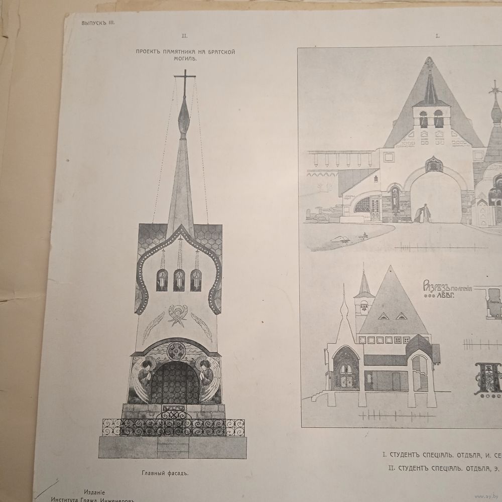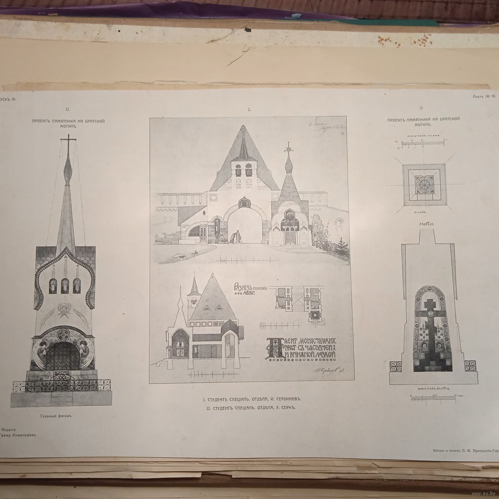 Проект памятника на братской могилъъ. Клише и печать С.М. Прокудин-Горского, СПБ. 31х27см. РАСПРОДАЖА КОЛЛЕКЦИИ.