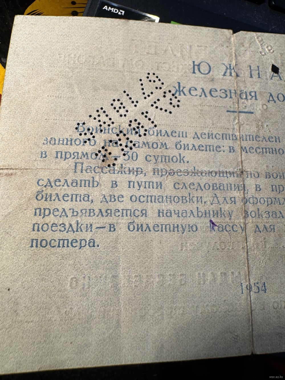 Проездной билет 1954г.