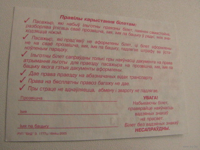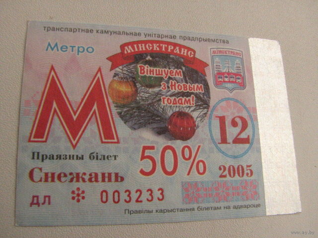 Проездной билет - 2005 год. 12 месяц. Минск (льготный)