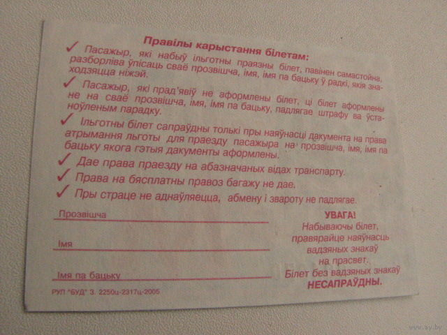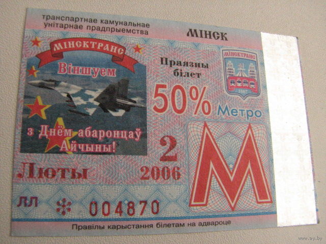 Проездной билет - 2006 год. 2 месяц. Минск (льготный)