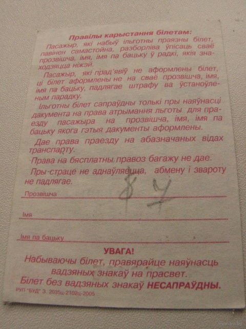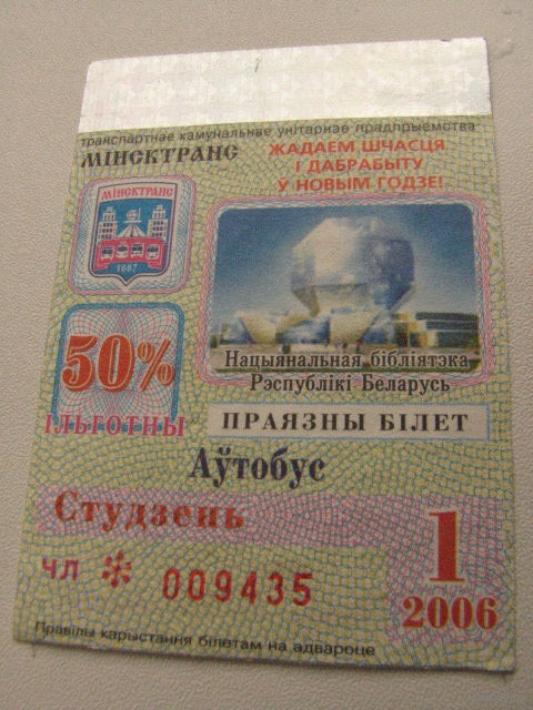 Проездной билет Автобус - 2006 год. 1 месяц. Минск (льготный)