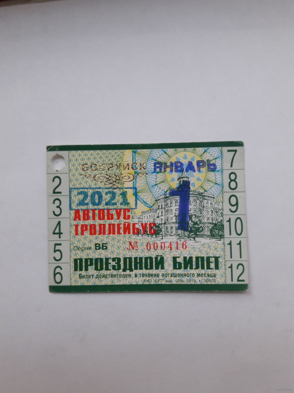 Проездной билет Автобус-Троллейбус Бобруйск сер ВБ 2019