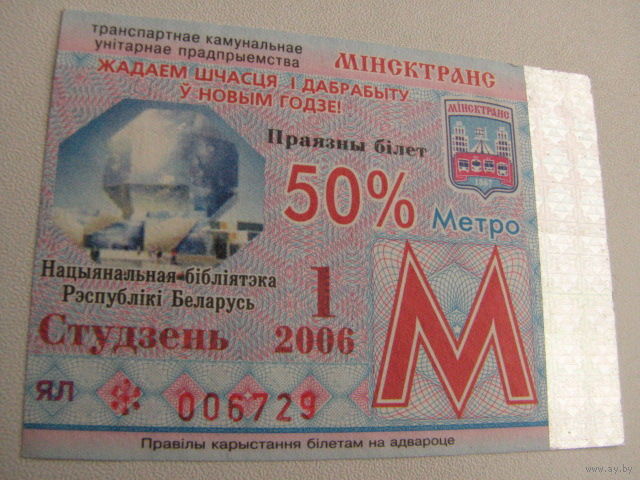 Проездной билет Метро- 2006 год. 1 месяц. Минск (льготный)