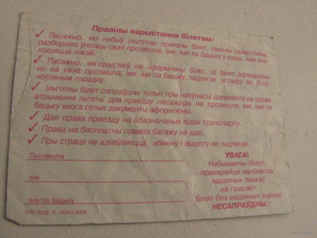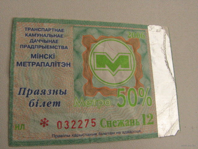 Проездной билет Метро - 2006 год. 12 месяц. Минск (льготный)