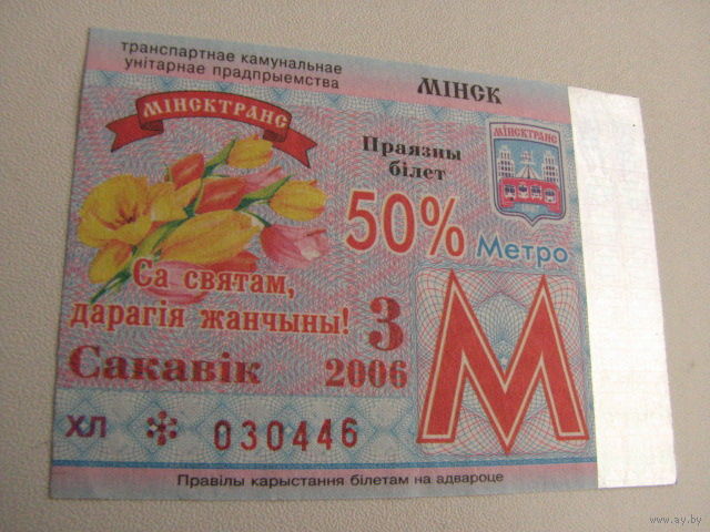 Проездной билет Метро- 2006 год. 3 месяц. Минск (льготный)