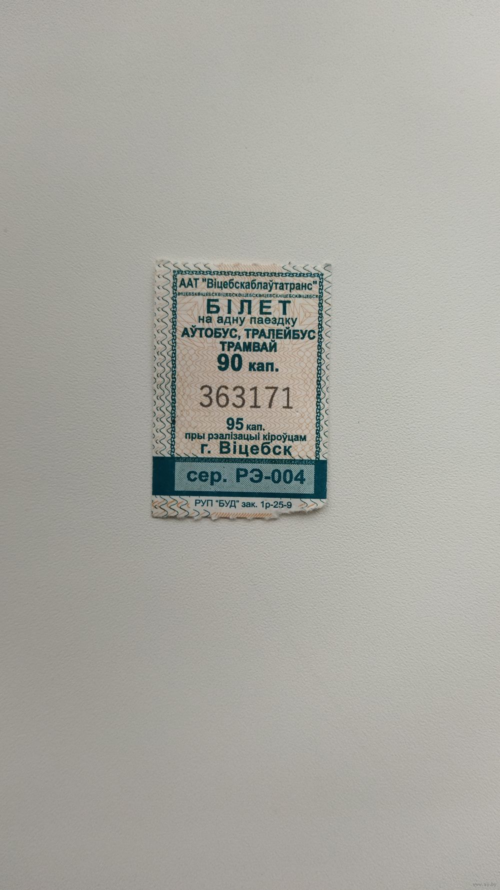 Проездной билет на одну поездку, сер.РЭ-004 г. Витебск, 2025г.