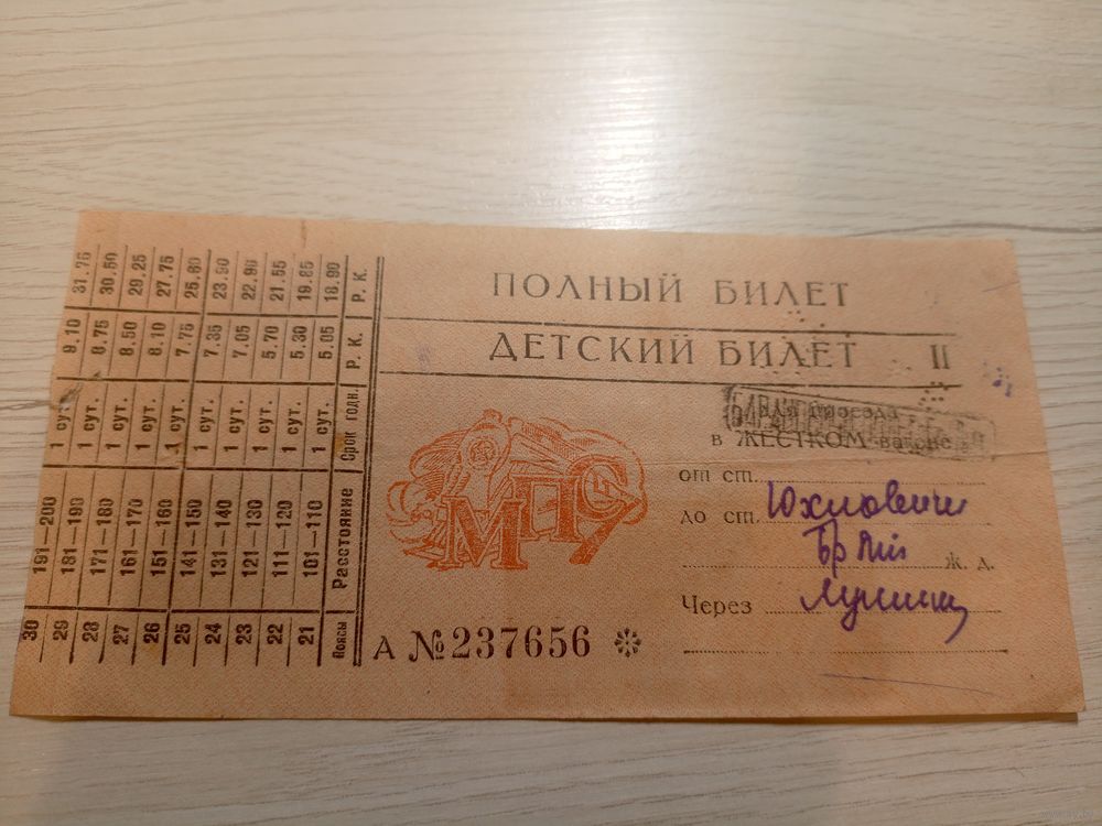 Проездной билет СССР, Ж. Д.\7