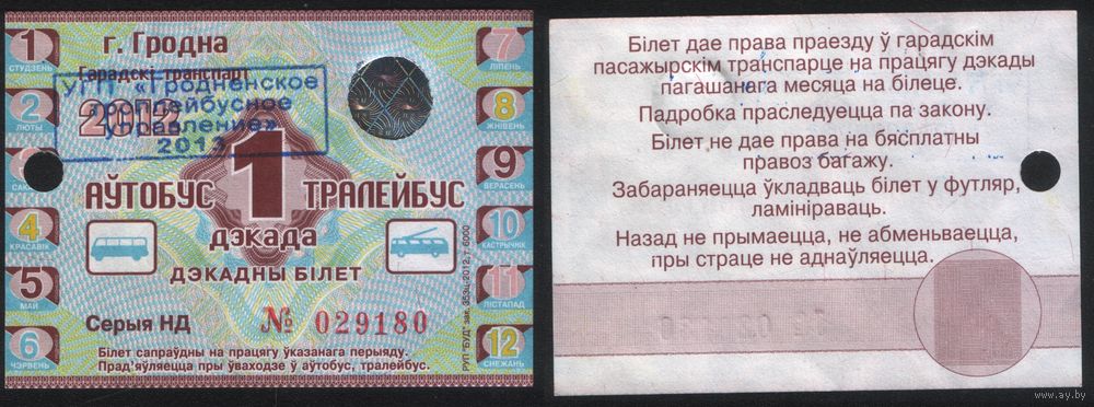 Проездной РБ Гродно 2013.03.1 декада автобус троллейбус все дни с 1 по 10 марта НД029180 РУП БУД з.353ц-2012, т.6000 ТОРГ/ВАША ЦЕНА