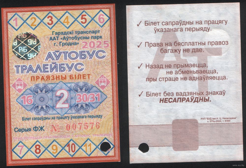 Проездной РБ Гродно 2025.12.2 автобус троллейбус все дни с 16 по 30(31) декабря ФЖ007576 РУП БУД им.А.Ц.Непогодина з.570ц-2024, т.8000 ТОРГ/ВАША ЦЕНА