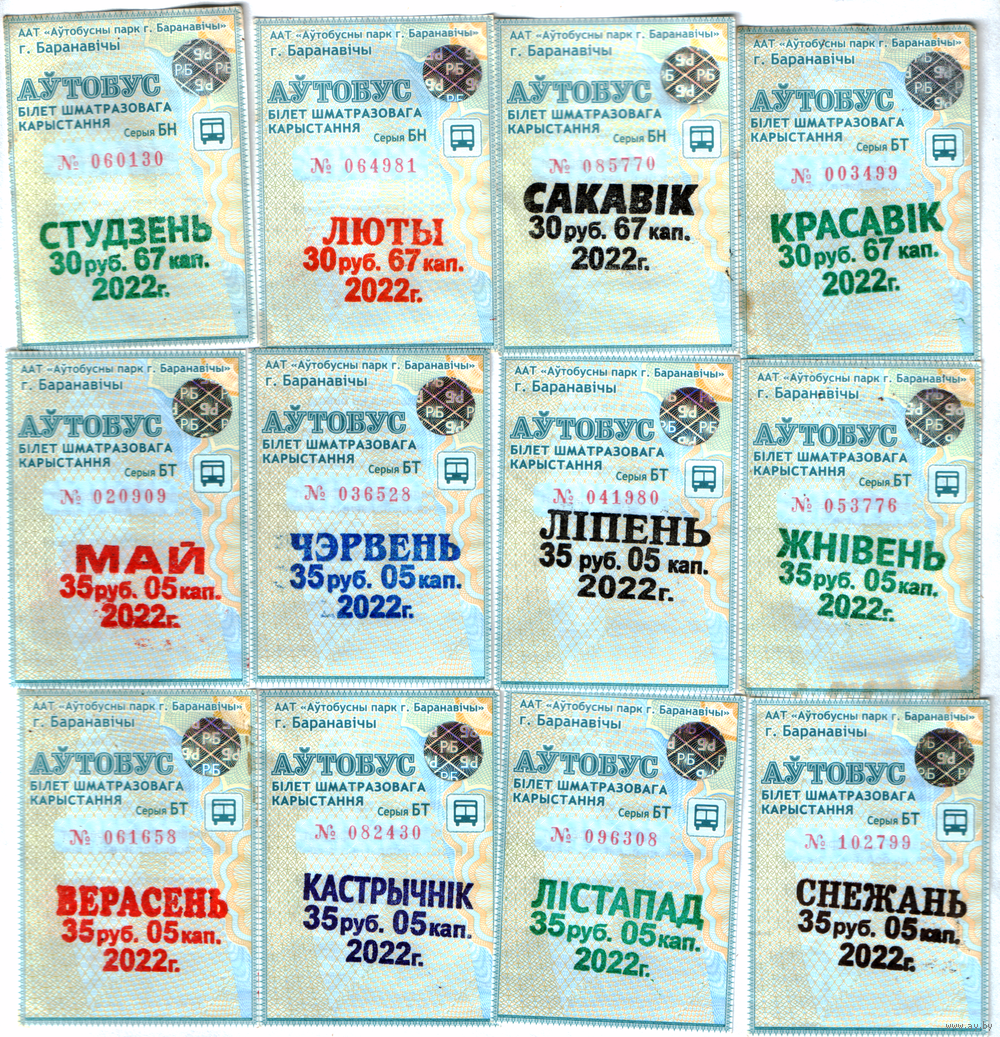 Проездные Барановичи автобус комплект за 2022 год