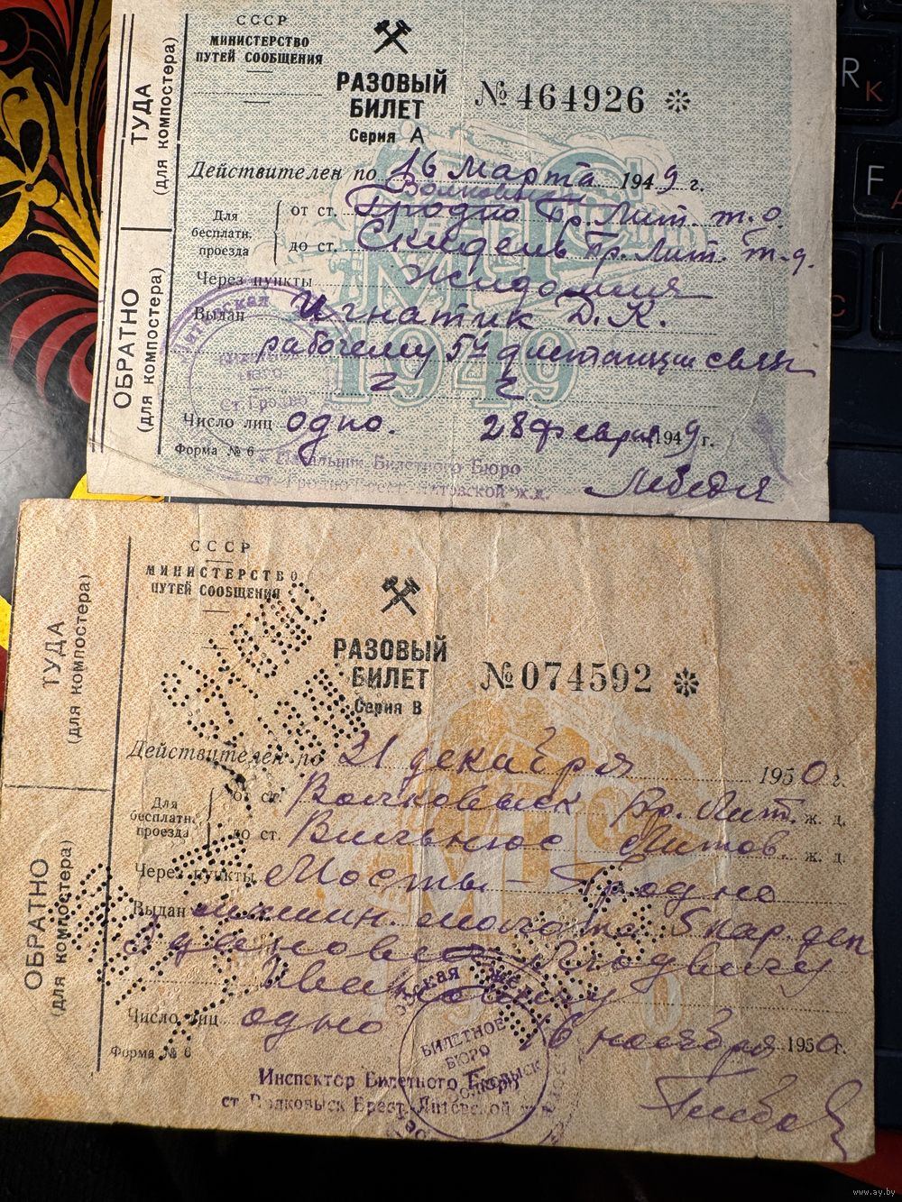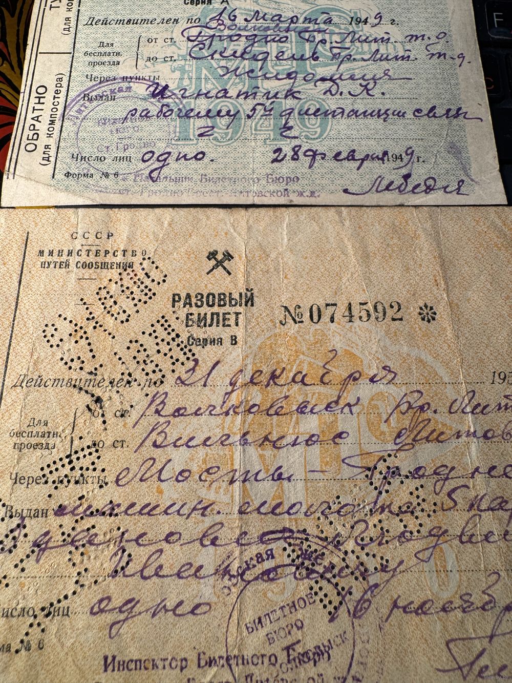 Проездные билеты.цена за два.