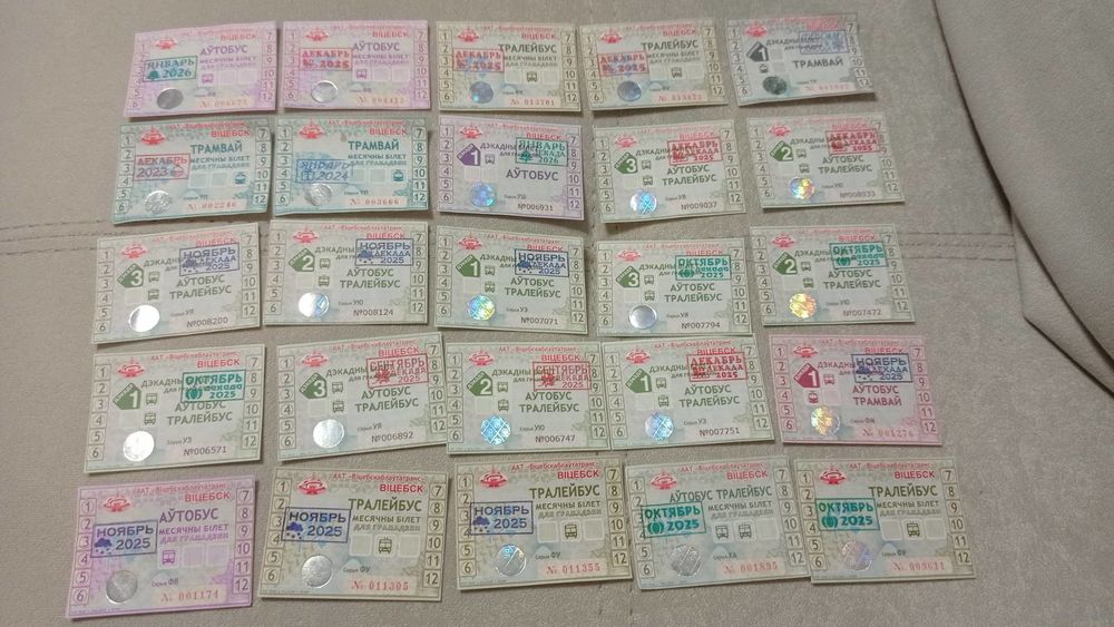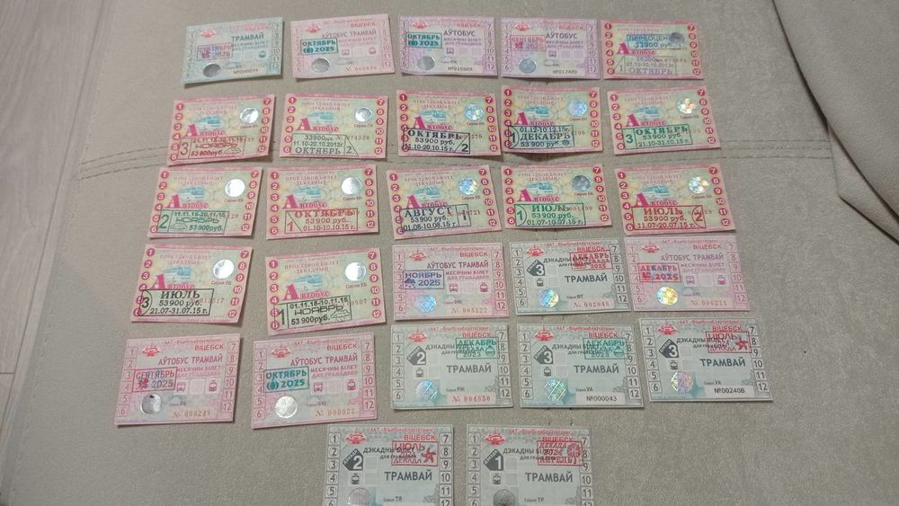 Проездные билеты. Витебск и Барановичи. 52 шт. Цена за все. Передача в Витебске при личной встрече возле ратуши. Пересылка в другой город за счёт покупателя по тарифам Белпочты либо Европочты после 100% предоплаты.
