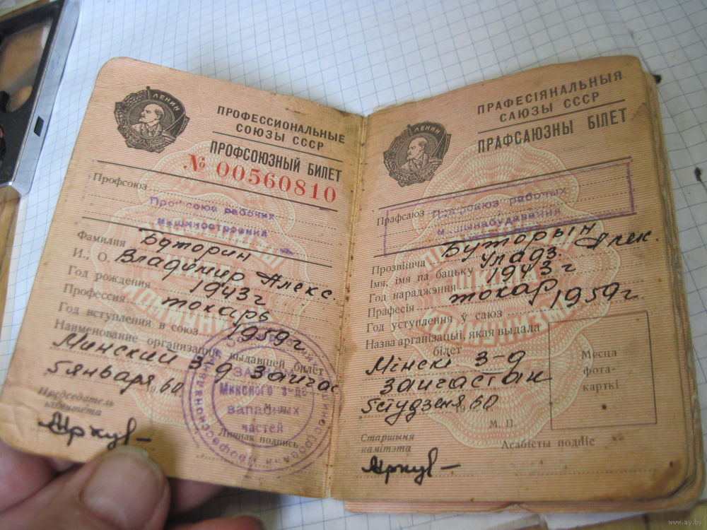Профсоюзный билет 1960 г с рубля!