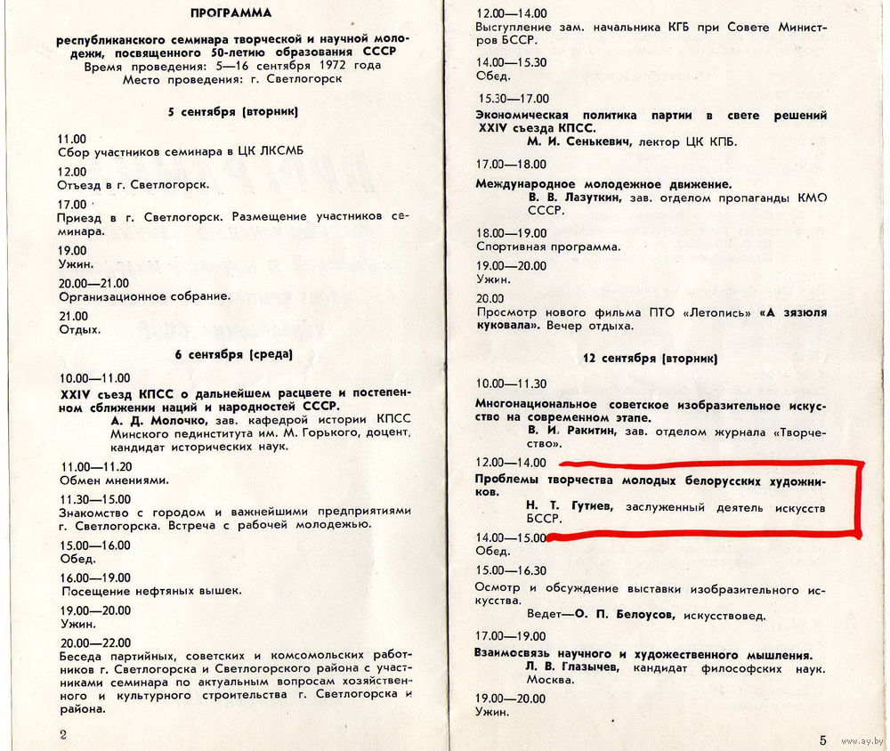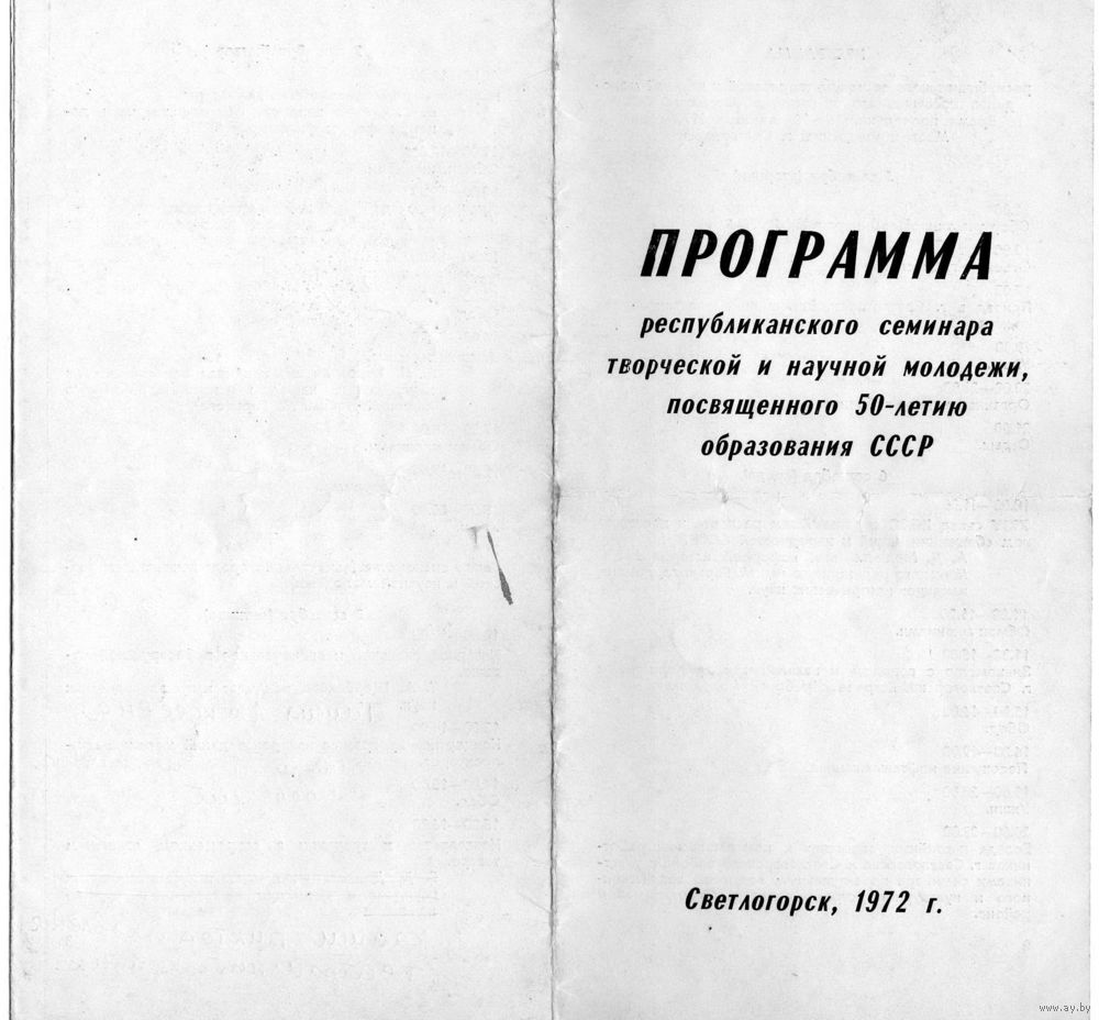 Програмка семинара творческой и научной молодежи, посвященного 59-летию СССР 1972г.