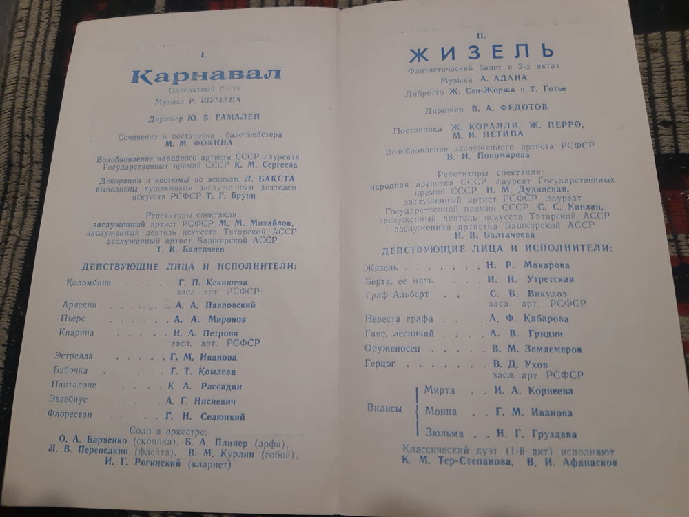 Программа балет Жизель в 2-х актах 1967 год