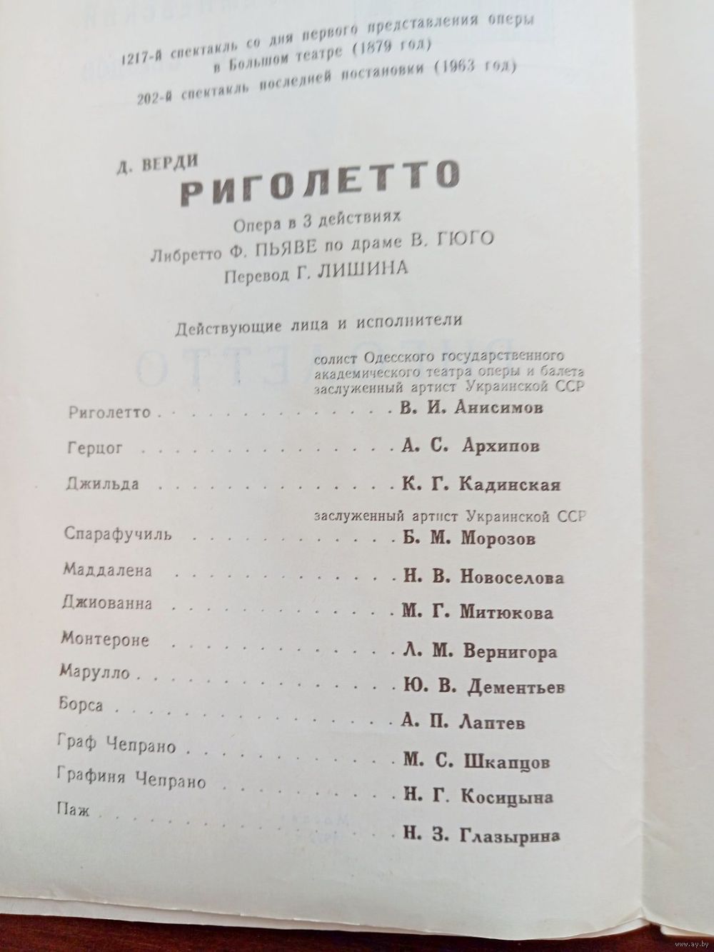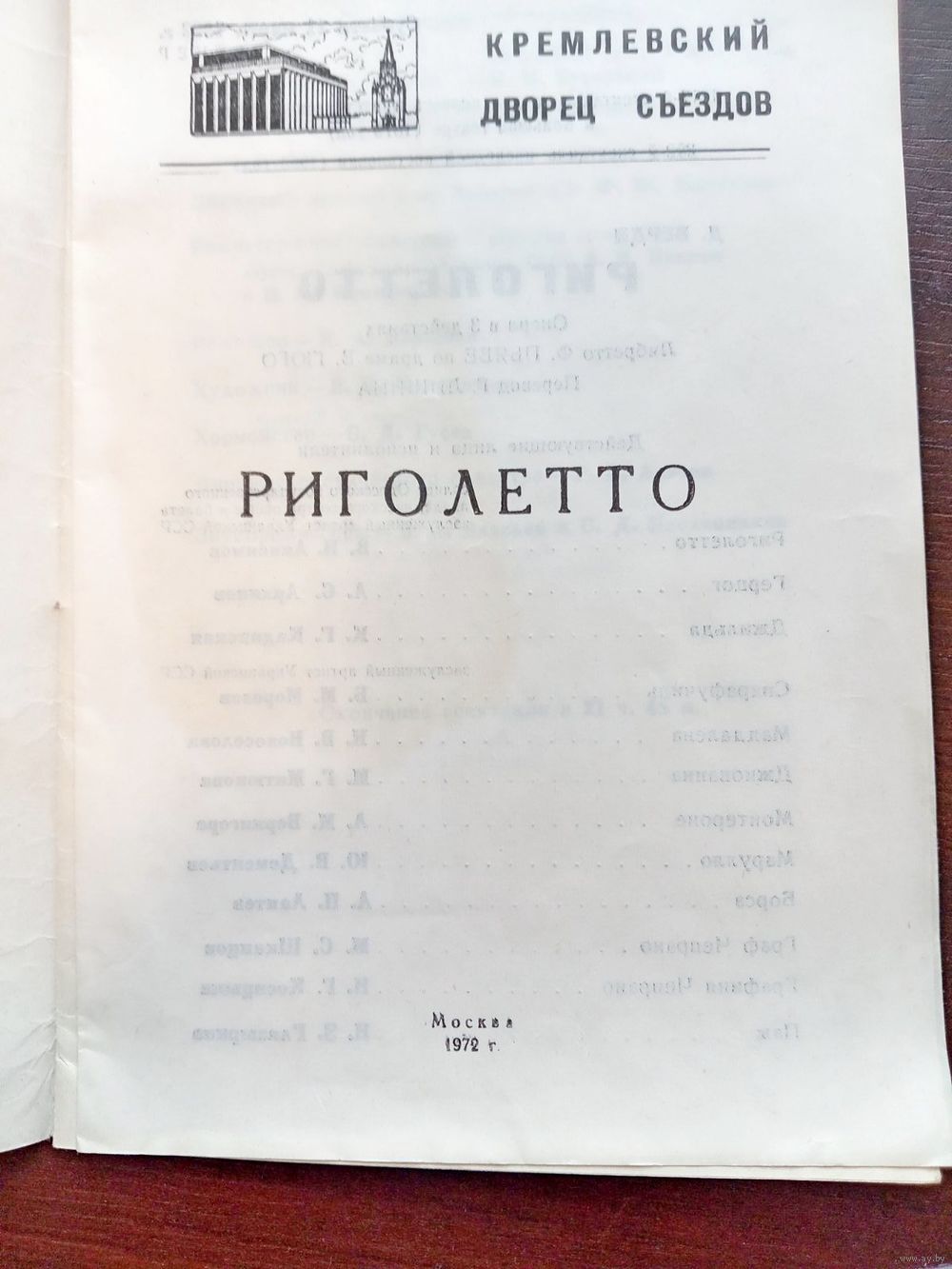 Программа, буклет, билет к опере Верди "Риголетто" 1972г. Кремлевский дворец съездов