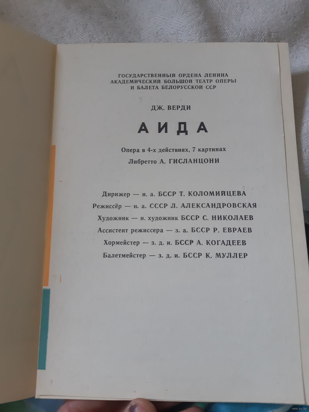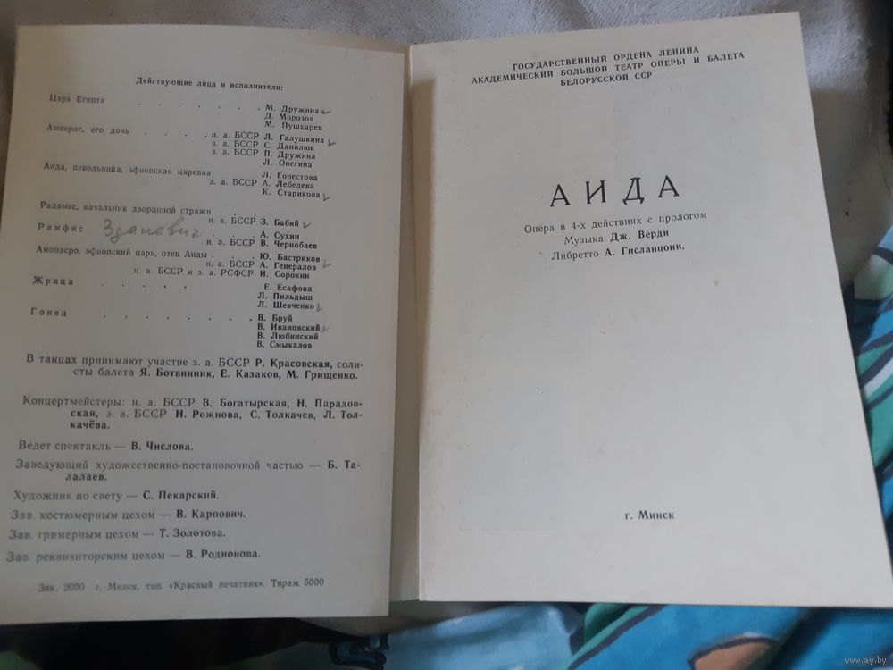 Программа + буклет Опера Аида. Государственный Большой театр оперы и балета БССР